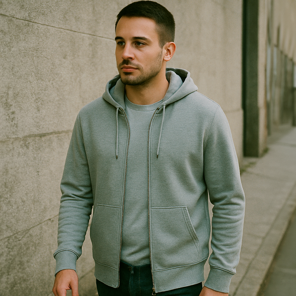 Realizzata in 50% cotone e 50% poliestere da 270 g/m², con interno in pile spazzolato, garantisce calore e morbidezza, oltre a una superficie ottimale per stampa DTF, serigrafia o ricamo.